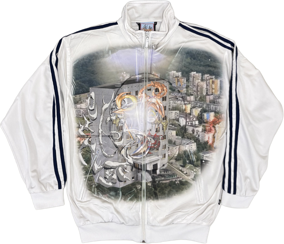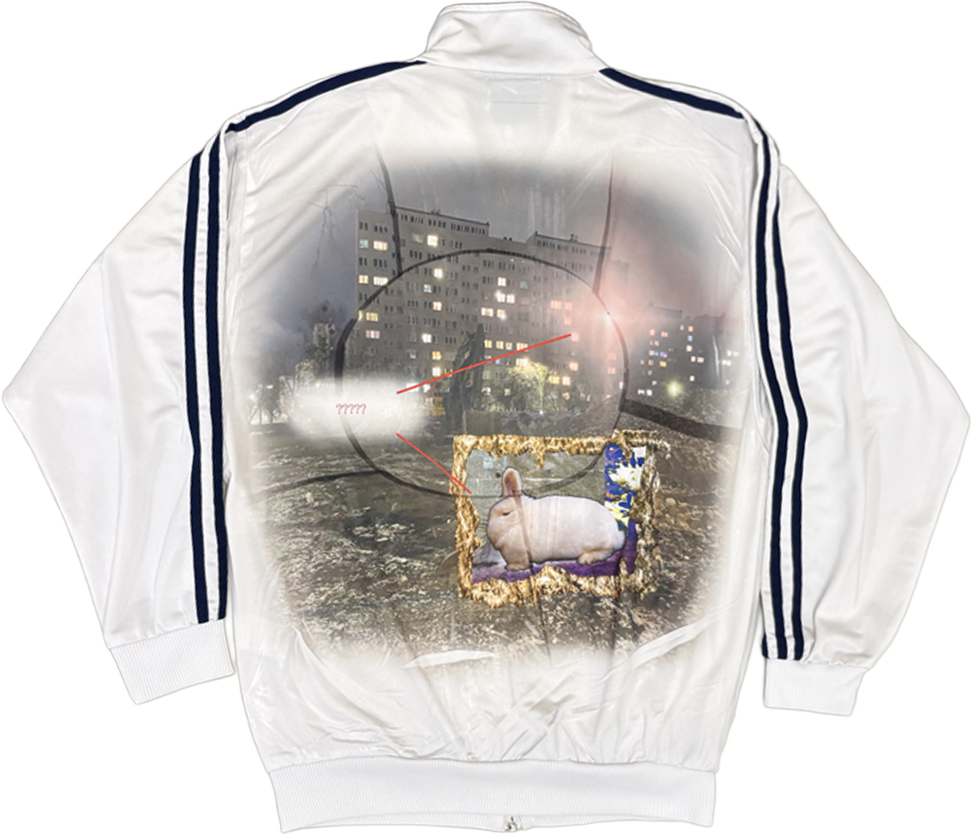 * Wenpius is not associated with the manufacturer of the jacket. The item was bought second hand and printed by Wenpius. It’s a unique artistic creation. *